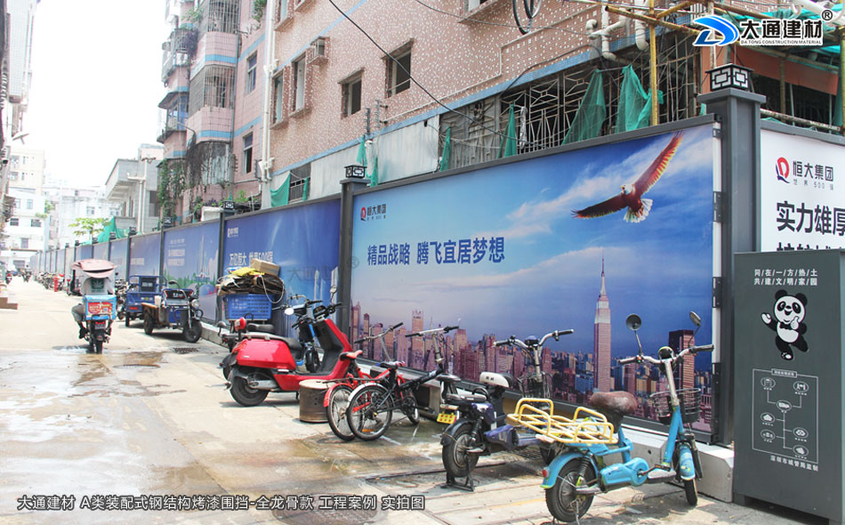 大通A類(lèi)烤漆鋼圍擋-全龍骨款應(yīng)用于深圳南山大新村城市更新項(xiàng)目-A/B/C類(lèi)圍擋-深圳市大通建材有限公司鋼圍擋生產(chǎn)定制廠家