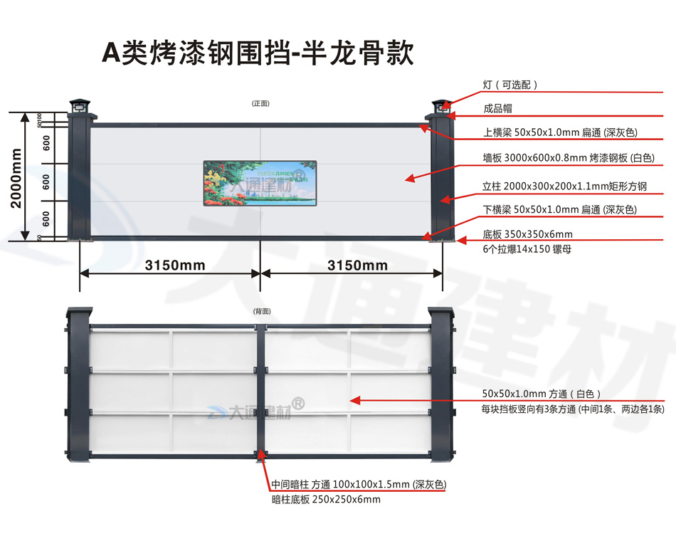 了解更多“大通建材A類鋼結(jié)構(gòu)烤漆圍擋半龍骨款”的生產(chǎn)定制、配送安裝、規(guī)格與價(jià)格 等詳情 請(qǐng)致電13826562448 梁先生