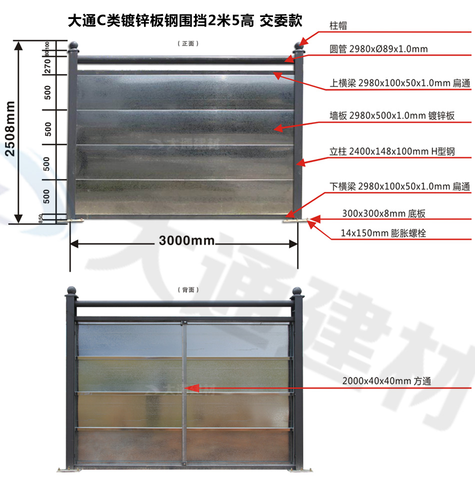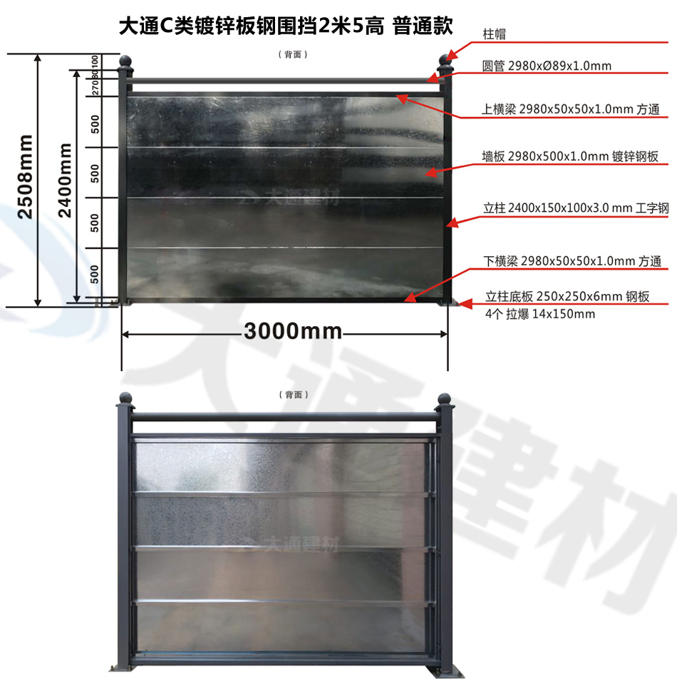 大通圍擋為您解答關于“大通C類鍍鋅板鋼圍擋常用款式的尺寸規格介紹”相關問題?
