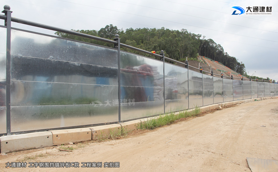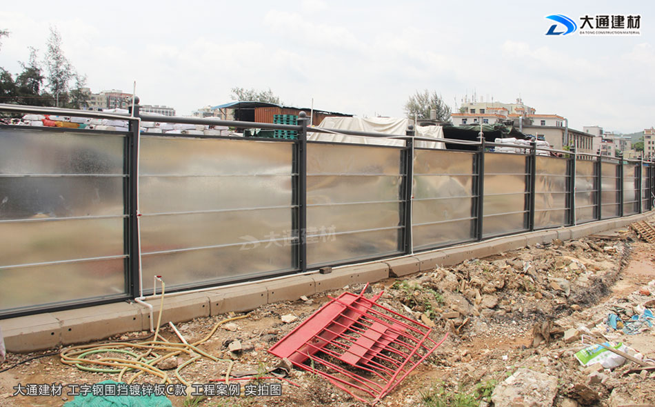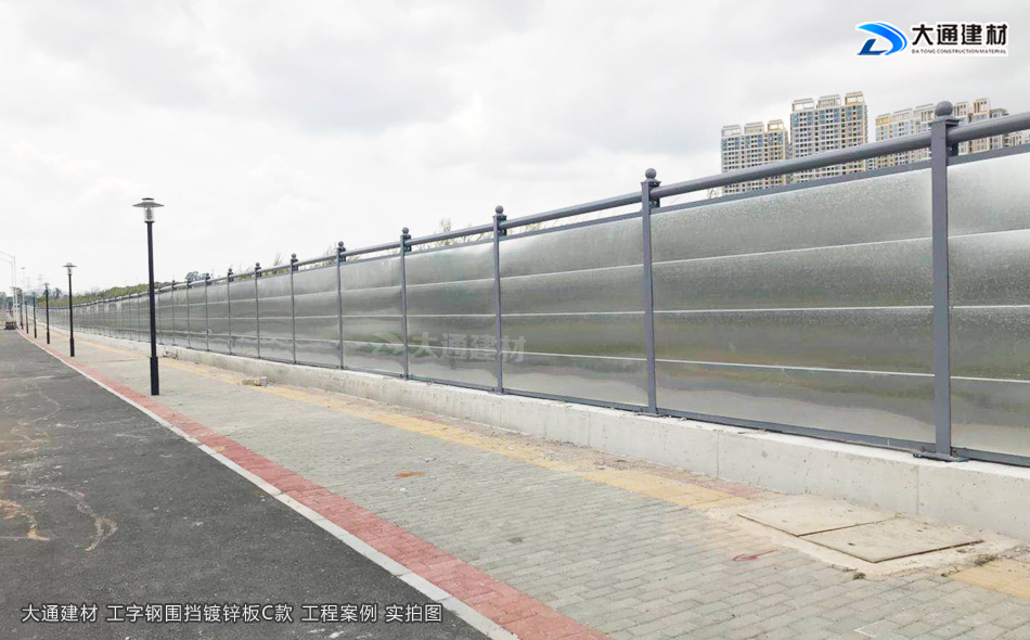 大通建材工字鋼圍擋C類鍍鋅板款亦是一款新型的裝配式鋼結構圍蔽,符合市政新標準、拆裝方便、結構牢固、抗風力達到10級、安全性高,圍擋生產源頭廠家直接銷售、價格更便宜。