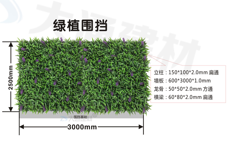 深圳大通建材綠植圍擋采用高品質、防紫外線、抗老化、環保材質制作而成,各種綠植合理搭配,構成一副讓人流連的自然風景畫。
